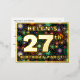 The front of this exciting twenty-seventh birthday party/celebration foil invitation postcard design features a custom name, a large number “27th”, the message “BIRTHDAY PARTY!”, and a border. The background of the front features a bold, multicolored pattern inspired by bursting celebratory fireworks. The back features personalized details about the event, such as the date, time, venue, and any other information that may be important. Personalized invitations like these might be a fun way to invite attendees to a birthday gathering/party being held to honour somebody’s 27th birthday. [~Z0000609]