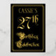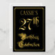 The front of this fancy, elegant, foil twenty-seventh birthday celebration/party invitation design features the message “27th Birthday Celebration” in opulent script-style text. It also features a custom name. The background of the front is coloured black by default (although it can be customized to a different colour). The back features personalized details about the event, such as the date, time, location, and any other relevant information. Opulent, ornate, customizable invitations like these might be used to invite guests to a birthday party being held to honour somebody’s twenty seventh birthday. [~Z0000589]