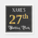 This fancy and elegant birthday paper napkin design features a customizable name and the message “27th Birthday Party”. The large number “27th” has a faux/imitation gold-inspired colouring pattern, the words “Birthday Party” are in luxurious script-style text, and the background is coloured black by default (although it can be customized). Luxurious, ornate paper napkins like this might be useful to have at a birthday celebration being held in celebration of somebody’s 27th birthday. [~Z0000565]