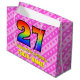 27th Birthday: Pink Stripes & Hearts, Rainbow # 27 Large Gift Bag