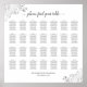 Ce magnifique tableau de sièges mariage présente un design simple mais élégant avec du texte gris foncé sur un arrière - plan blanc. Le titre est écrit en calligraphie script lettering et dit : s'il vous plaît trouver votre table. Le graphique est décoré d'un frileux floral faux boucles d'argent et tourbillons dans les coins. Contient des sièges pour 28 tables à 10 personnes par table ou 280 personnes.