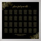 Ce magnifique tableau de sièges mariage présente un design simple mais élégant avec du texte en or sur un arrière - plan noir. Le titre est écrit en calligraphie script lettering et dit : s'il vous plaît trouver votre table. Le graphique est décoré d'une feuille d'or frileusement florale fausse feuille dans les coins. Contient des sièges pour 28 tables à 10 personnes par table ou 280 personnes.