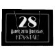 This vintage appearance Roaring Twenties look inspired birthday themed gift bag design features a large art deco style inspired number "28", the message "Happy 28th Birthday,", a personalized name, and a border pattern consisting of thin lines. It also has a black-coloured background. A birthday themed gift bag like this may be used to wrap a gift or present being given to somebody who is celebrating their twenty eighth birthday. [~Z0000496]