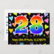 The front of this loving, colourful, and exciting birthday themed postcard design features a large number "28" with a rainbow spectrum gradient inspired pattern, along with the message "Happy 28th Birthday,", and a personalized recipient name. The front additionally has a vibrant and colourful loving heart shapes background pattern. The back features an editable birthday greeting message, or could perhaps be cleared and left blank if a message is to be written by hand instead. A personalized birthday postcard like this might be a fun way to send a message celebrating somebody’s twenty eighth birthday. Postcards like this might also be used to invite guests to a birthday party being held for somebody who is turning 28 years old. [~Z0000448]