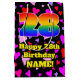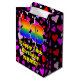 This colourful and fun birthday gift bag design features a large number “28” with a rainbow spectrum gradient inspired pattern, along with the message “Happy 28th Birthday,”, and a personalized name. The background features a pattern of heart shapes with colours like purple, pink, and red. A birthday themed gift bag like this might be a fun way to wrap a gift or present being given to somebody who is celebrating their 28th birthday. [~Z0000551]