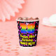 This cheerful and joyful birthday themed paper cup design features a large number “28” with a rainbow spectrum gradient inspired pattern, along with the message “Happy 28th Birthday,”, and a custom name. The background features a pattern of pink, purple, and red heart shapes of various sizes. Fun, joyful paper cups like this might be fun to use at a birthday celebration/party being held to celebrate somebody’s twenty eighth birthday. [~Z0000548]