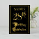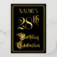 The front of this opulent, elegant, foil twenty-eighth birthday party/celebration invitation design features the message “28th Birthday Celebration” in luxurious script-style text. It also features a customizable name. The background of the front is coloured black by default (although it can be customized to a different colour). The back features personalized details about the event, such as the date, time, location, and any other information that may be relevant. Fancy, ornate, personalized invitations like these might be used to invite guests to a birthday celebration/party being held to celebrate somebody’s twenty eighth birthday. [~Z0000589]