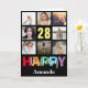 28th Happy Birthday Photo Collage Modern Black Card with personalized name. For further customization, please click the "Customize it" button and use our design tool to modify this template.