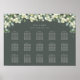 A dark grey green winter wedding seating chart featuring hand painted snowberries and eucalyptus. The template text is set for 15 tables of 8 - all text is fully editable. Alternative layouts and coordinating items are available in my store.