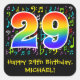This fun, colourful, and vibrant birthday themed sticker design features a large number "29" having a rainbow spectrum gradient inspired pattern. It also features the message "Happy 29th Birthday,", and a personalized name. Part of the background has a colourful music notes and symbols pattern. Birthday-themed stickers like this might be fun to use as a birthday party decoration, or perhaps give as a birthday present, or perhaps be used when wrapping birthday gifts being given in celebration of a singer’s, a song composer’s, a musician’s, or somebody else’s 29th birthday. [~Z0000423]