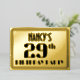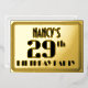 The front of this elegant and 1920s/1930s era style inspired twenty-ninth birthday celebration foil invitation card design features a personalized name, an art deco look inspired number “29th”, the message “BIRTHDAY PARTY”, and a border pattern consisting of lines. The back features personalized details about the event, such as the place, date, time, and any other important information. Elegant, luxurious, editable invitations like these might be used to invite guests to a birthday gathering being held in celebration of somebody’s 29th birthday. [~Z0000606]