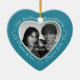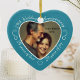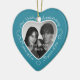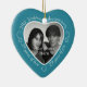 Celebrate a 29th happy year of marriage with a custom photo ornament in a delightful heart shape frame. Simply upload your own photo of the married couple and it will appear in the cutout. The aqua surround features a white script font and decorations. The words are: 29th Wedding Anniversary - 29 years of love - 29 years of joy. On the back you can personalize this keepsake with your own message and can also add the year or a full date if you prefer. Note: if you like the twenty-nine year anniversary ornament but have your heart set on a different color, please contact me.