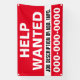 Are you hiring and want to get the word out? This 2.5' x 4' single sided, "Help Wanted" banner with job description line and phone number, is fully customizable! For indoor or outdoor use. All banners are hemmed and welded for a clean finished edge. For easy outdoor installation, on any surface, use the grommet option.