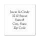 Personalize this custom square rubber stamp with your own return address and names. Rubber stamping your return address saves time mailing your invitations. Available with different ink pad colours (sold separately) in square sizes 1 inch, 2 inch, or 2.5 inch with a wooden handle or without a handle. No minimum order quantity and no setup fee.