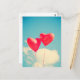2 Bright Red Heart Shaped balloons Floating Upward Postcard