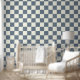 2" Chequerboard Slate Blue & Ivory White Wallpaper