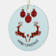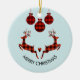 2 Christmas Deer Jumping Rustic Style Ceramic Ornament