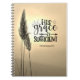 Inspirational notebook, journal depicts a nature photograph with the sun shinning on two blades of grass and a golden background. It features Bible Verse 2 Corinthians 12:9, "His Grace is Sufficient."