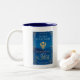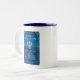 Une tasse à deux tons représentant des couvertures du deuxième roman de l'auteur Dana Stabenow, Eye of Isis, Disparition of a Scribe.