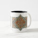 De chaque côté, un grand panneau en forme de diamant du Celtic entrelacent l'art, soutenu par la même conception encadré avec la spirale celtique colorée conçoit.