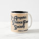 Montrez votre soutien de la société d'imaginaire de la Science de Los Angeles avec cette tasse de fantaisie. Le nom et le logo de LASFS apparaissent en noir et blanc contrasté sur un arrière - plan orange filigrané avec des éléments du logo iconique de LASFS. 20% du montant vont bénéficier le LASFS.