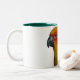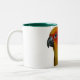 Tasse des plumes de l'écarlate avec l'attitude de perroquet de compagnon