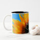Café Mug avec photo, Initiale et Nom. L'arrière - plan dans cette image est un tournesol jaune avec un ciel bleu - les accessoires correspondants qui sont vendus séparément affichent plus de la photo, mais cette tasse se marie bien car elle fournit un cadre couleur doux pour votre nom. Les polices et les couleurs de police peuvent être modifiées. Les accessoires de bureau décoratifs correspondants sont vendus séparément. Design HAMbyWhiteGlove alias HAMbWG.