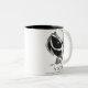 Le logo et le texte de Nikto avec le soupçon multiplie le slogan de confiance sur une tasse à deux tons de 11 ou 15 onces.