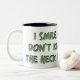 Je souris parce que je ne sais pas que se passe-t-il. Tasse de café drôle avec l'énonciation humoristique. Grand cadeau pour lui.