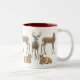 La conception originale de beaux-arts d'un blanc a coupé la queue le mâle, la daine et le faon de cerfs communs par l'illustrateur/concepteur Carolyn McFann sur des tasses de qualité, des chemises, des cartes et d'autres grands cadeaux. Grande idée de cadeau pour des fans de chasseurs et de cerfs communs.