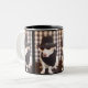 Myrtie, un mélange de chien avec de petites jambes de basset, habillées en tant que frère de bleus. Ceci pourrait faire un cadeau d'amusement pour quelqu'un, ou vous pourriez vouloir qu'un ensemble pour votre maison emploie avec (ou blanc) les plats noirs. Vous pourriez également le mettre sur la tasse blanche du voyage de Zazzle.
