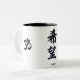 Le symbole de kanji pour l'espoir orne cette tasse de café/thé. Les symboles de l'OM sont également de chaque côté du symbole de kanji. Ces tasses sont disponibles dans beaucoup de styles, de tailles et de couleurs. Appréciez et Namaste.