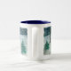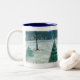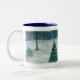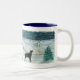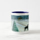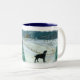 Une tasse de café en céramique à deux tons comportant labrador retriever noir dans la neige.