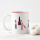 Cette tasse de café en céramique a le divers rouge à lèvres de lèvre d'articles de maquillage, mascara, et vernis à ongles. C'est une conception parfaite pour favoriser vos affaires de cosmétologie, affaires personnelles de styliste, ou distributeur indépendant pour des cosmétiques. Cette conception peut être personnalisée avec votre raison sociale ou être customisée avec votre propre message, numéro de téléphone ou email unique. Cette conception peut être réelle acheté ou vous pouvez l'employer comme modèle pour faire votre propre design d'entreprise unique. Cette tasse de café fait un grand cadeau pour des divas de mode aussi !