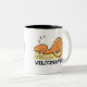 Tasse de Velocinaptor comportant une conception d'un velocinaptor de bande dessinée faisant une sieste sur Josh Lanyon "Jefferson nouveau Blythe, Esquire" dans l'avant et une citation du livre sur le dos de la tasse. Conception de Velocinaptor de Johanna Ollila.