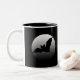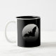 Cette lune avec une silhouette de batte est montrée brillamment sur l'arrière - plan noir de la tasse. Grand pour le début de la matinée ou le mi café de jour. Montrez votre esprit de Halloween !