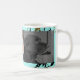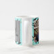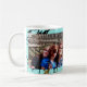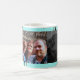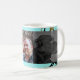 Classy, DIY photo coffee mug with 2 personalized photos of family, friends, pets, or favourite places or events- Makes a great personalized gift on Mother's Day, for new parents, for grandparents, hostess gift for newlyweds, even for pet lovers. Display favourite photos while on your coffee break at work for a chance to brag and show off loved ones or vacation memories. Left side has large rectangular photo template. Right side displays a square, personalized picture. Personals photos of same shapes work best. Framed with Tiffany blue, faux metallic gold, and black marble stone look border for a trendy, modern style. Personalized office gift will become a keepsake for anyone.