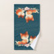 Towel set with a drawing of 2 red foxes. One standing up the other laying down. Drawn with watercolor. Faux gold stars decorate the sky above them.