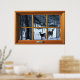 Enhance the decor of any room with this picturesque poster. The artwork creates the illusion of having a window that is encased in a brown wood frame with 6 panes of glass. The two deers' in the fresh snow covering the trees and ground makes you feel as though you are looking out at a picturesque winter scene. The original artwork is 36"W x 24"H which is the average poster size and was created at high resolution (300 dpi) so re-sizing it is not a problem. See other beautiful scenes for all 4 seasons in my store. Feel free to contact me if you have any questions.