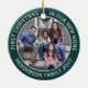 Celebrate the joy of your new place with a custom two photo "First Christmas in our New Home" green and white round ceramic ornament. All text and pictures on this template are simple to personalize, and can be different or the same on front and back. (IMAGE & TEXT DESIGN TIPS: 1) To adjust position of wording, add spaces at beginning or end. 2) To center the photo exactly how you want, crop it into a square shape before uploading to the Zazzle website.) Elegant green and white border design features stylish modern minimalist typography family name and year, and 2 images of your choice. This unique family keepsake adds an elegant touch to Xmas home decorations or makes a thoughtful housewarming realtor gift idea. There's no place like a new home for the holidays!