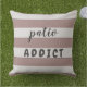 Text says "poolside PRO" on one side, and "patio ADDICT" on the other. Text can easily be customized in order to create fun and relevant alternatives, maybe even contrasting on each side of the pillow. With several pillows it might even turn into some fun game.