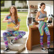 Stylish woman's legs in bright striped leggings, highlighting a chic 2 IN 1 design perfect for any occasion.