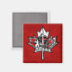 Dark-red 2 inch square magnet with maple leaf special design with the national symbols and names of different cities of Canada