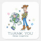 Say "thank you" in Toy Story style with this "2 Infinity and Beyond" square sticker! Featuring Buzz Lightyear alongside colourful space-themed details, this playful design captures the adventurous spirit of the Pixar classic. Perfect for party favours, thank-you notes, or gift bags, this sticker adds a magical touch to your Toy Story-themed celebration.
