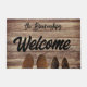Welcome your guests with cowboy boots on a rustic wood background. Personalize the text, remove any text or edit using the design tool to select a font style, size, and colour you prefer. A great housewarming or wedding gift idea. You can also add this design, where it fits appropriately, to one of the products shown in the transfer scroll bar on this page like the serving tray or bath mat.