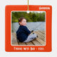 This custom 2 photo 2 sided sporty bluie and white personalized children's Christmas ornament features two of your child's or teenager's photos, and a special event or milestone that occurred during the year on each side, and distressed typography. This could be a new puppy, fishing trip with dad, graduation, sports championship game, special award, hunting trip, driver's license, and any other event your child or teenager has been proud of during the year. Your kids will love their own keepsake with their special milestones! Background colour is customizable.