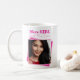 The photo coffee mug allows you to personalize up to two photos and includes four customizable text fields for names or other details. You can adjust the typography, and the design features pink and blue colour options. The current messages say "Best Mom Ever" and "Best Dad Ever." It's a perfect gift for Mother's Day, Father's Day, anniversaries, birthdays, or any special occasion to share a heartfelt and inspiring message.