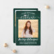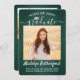 Share the joy of a high school or college graduation with these custom 2 photo green, white and silver announcements. (IMAGE PLACEMENT TIP: An easy way to centre a picture exactly how you want is to crop it before uploading to the Zazzle website.) This template includes graduate name, class year & school, and is simple to customize with any wording of your choice, such as party invitation details, parents' names, special honours, degree title, favourite inspirational quote, graduate's contact info, future education plans, or new job position. If there's any text not wanted simply delete it. Design features a dark green brushed background, faux foil mortar board cap, handwritten style script calligraphy, modern minimalist typography, and two photos of your choice, such as senior pictures or images from the commencement ceremony. Please note that background is printed colour not metallic foil. These elegant graduation announcement cards are a stylish way to share your special day celebration with family and friends. Congratulations to the graduate!
