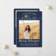 Share the joy of a high school or college graduation with these custom 2 photo navy blue and gold announcements. (IMAGE PLACEMENT TIP: An easy way to centre a picture exactly how you want is to crop it before uploading to the Zazzle website.) This template includes graduate name, class year & school, and is simple to customize with any wording of your choice, such as party invitation details, parents' names, special honours, degree title, favourite inspirational quote, graduate's contact info, future education plans, or new job position. If there's any text not wanted simply delete it. Design features a dark blue ombre background, faux foil mortar board cap, handwritten style script calligraphy, modern minimalist typography, and two photos of your choice, such as senior pictures or images from the commencement ceremony. Please note that gold is printed colour, not metallic foil. These elegant graduation announcement cards are a trendy and chic way to share your special day celebration with family and friends. Congratulations to the graduate!