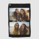 2 Photo Collage with Trendy Script Caption - Black Golf Towel